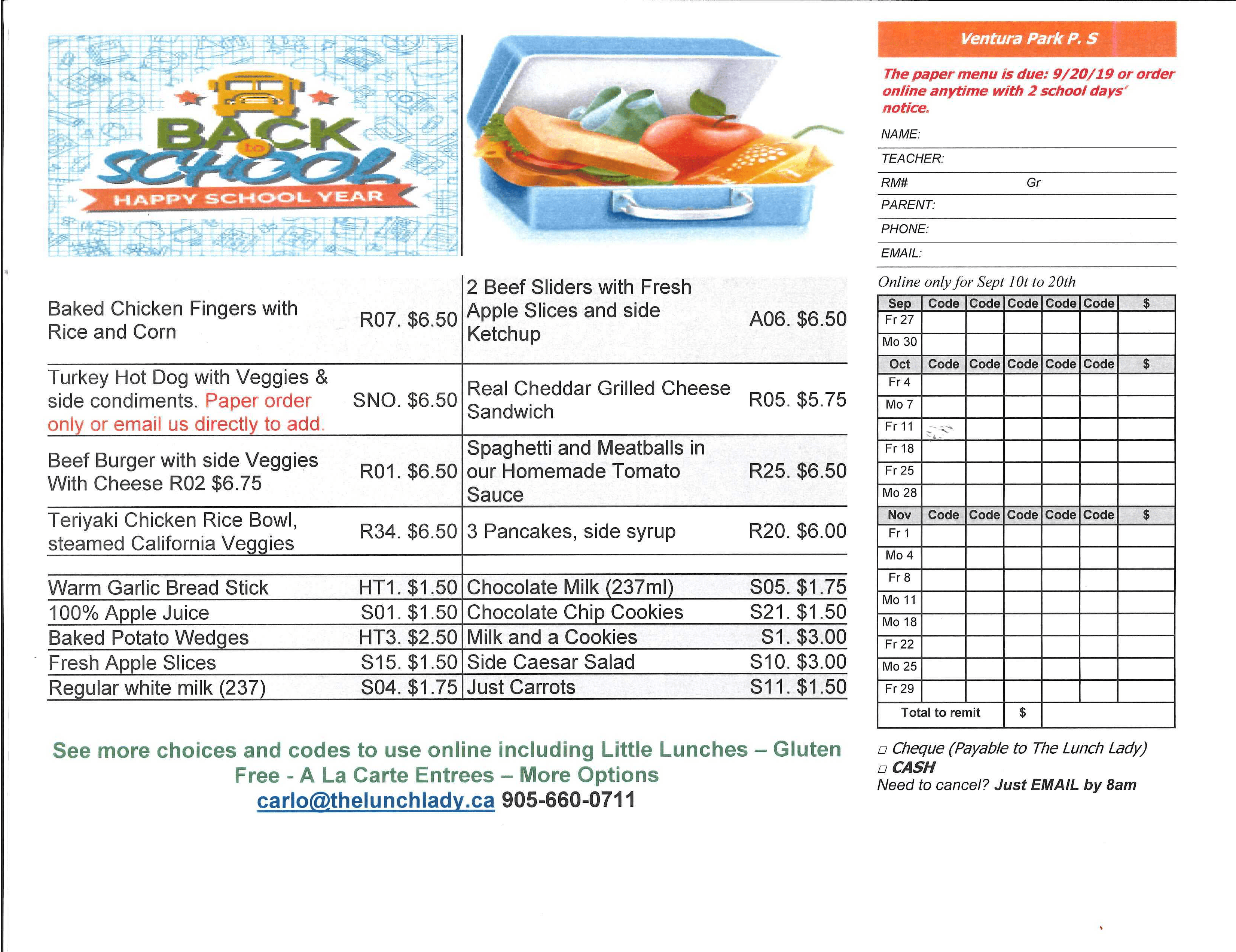 Lunch Lady Available Now! Posted on September 5, 2019 by Ventura Park P.S. Offered Mondays, Fridays and special Tuesdays. Author: Ventura Park P.S. View All Posts