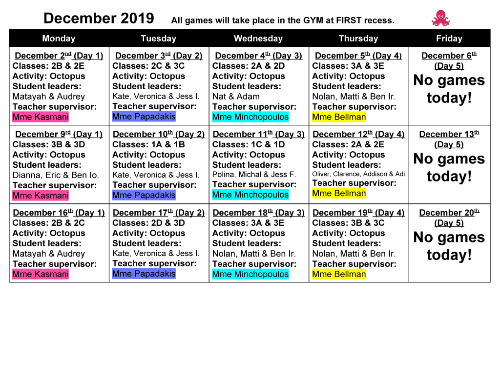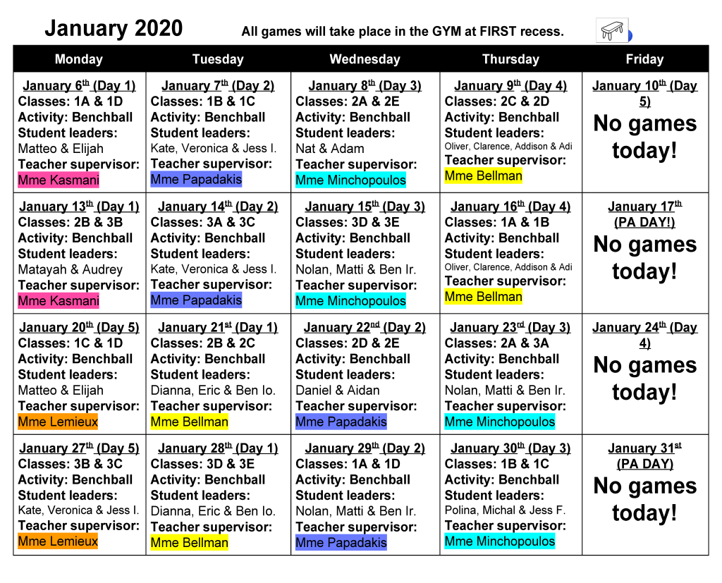 Primary Intramurals are beginning next week! They will be offered to all Grade 1-3 students for the months of November-February at first recess. They will be led by Grade 6 student leaders and supervised by various teachers.