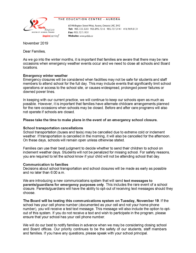 Severe Weather Letter from the Director Posted on November 12, 2019 by Ventura Park P.S. Author: Ventura Park P.S. View All Posts