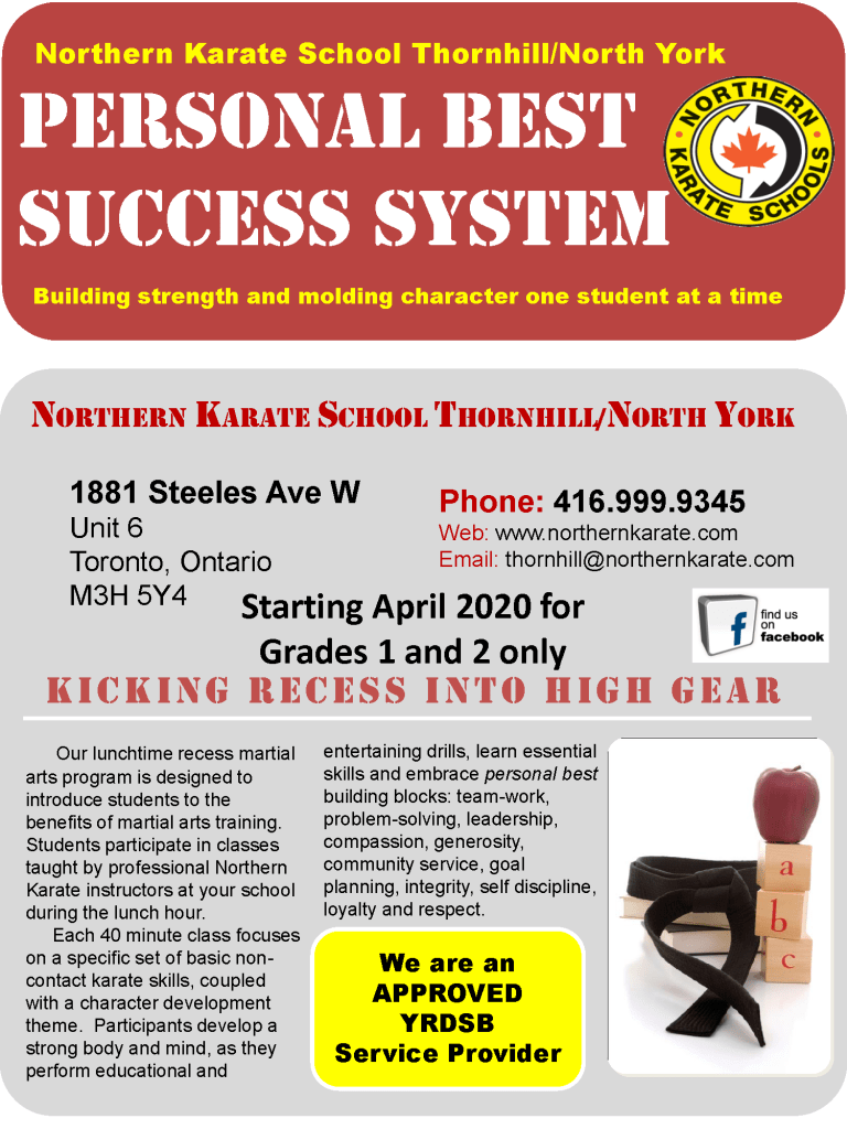 See flyer below for information on the Northern Karate lunch program that will be starting in April for Grade 1 and 2 students. Registration forms will be sent out later next week.