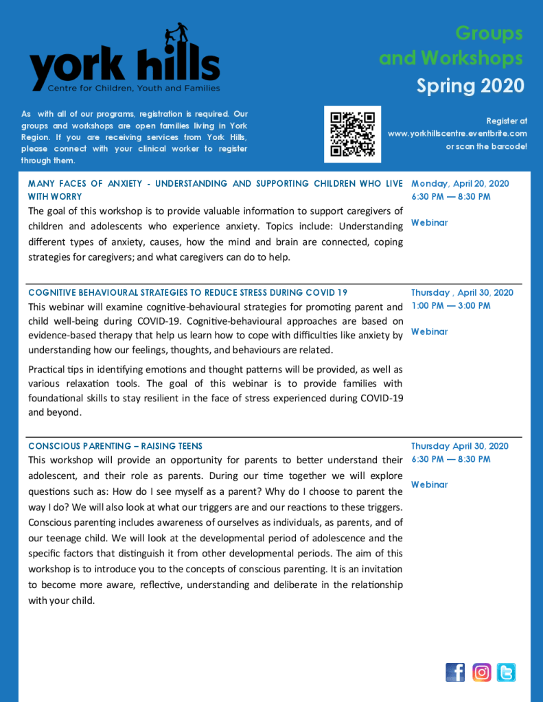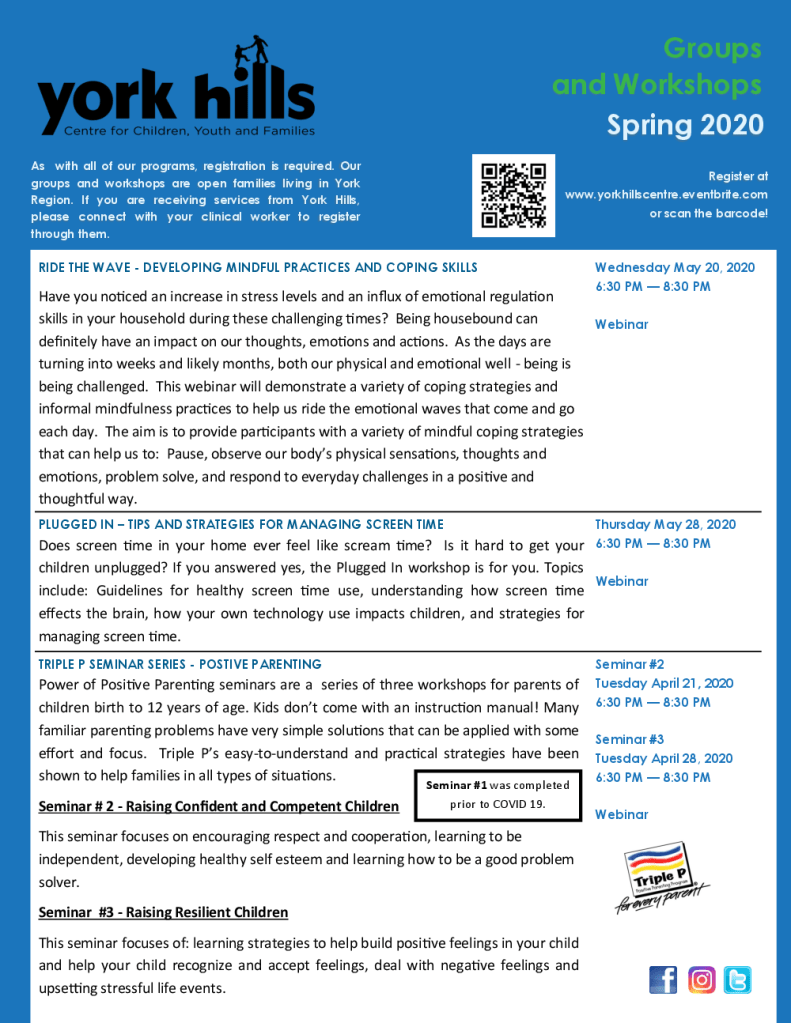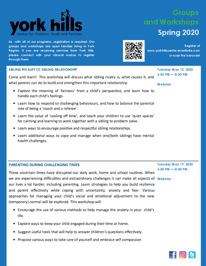 York Hills Centre for Children, Youth and Families Groups & Workshops Posted on April 17, 2020 by Ventura Park P.S. Author: Ventura Park P.S. View All Posts