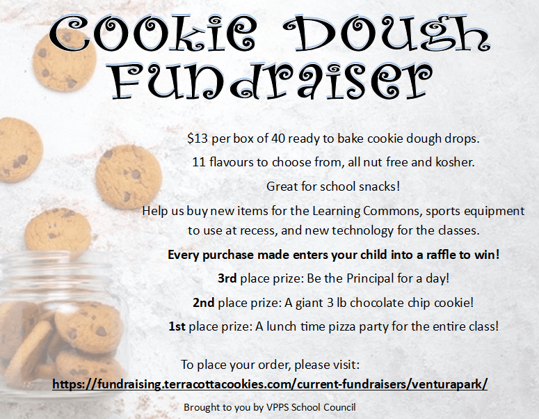 Last day to order the Terracotta Cookie Dough Boxes! Posted on November 3, 2021October 28, 2021 by Ventura Park P.S. To order please click here or go to : https://fundraising.terracottacookies.com/current-fundraisers/venturapark/ Author: Ventura Park P.S. View All Posts