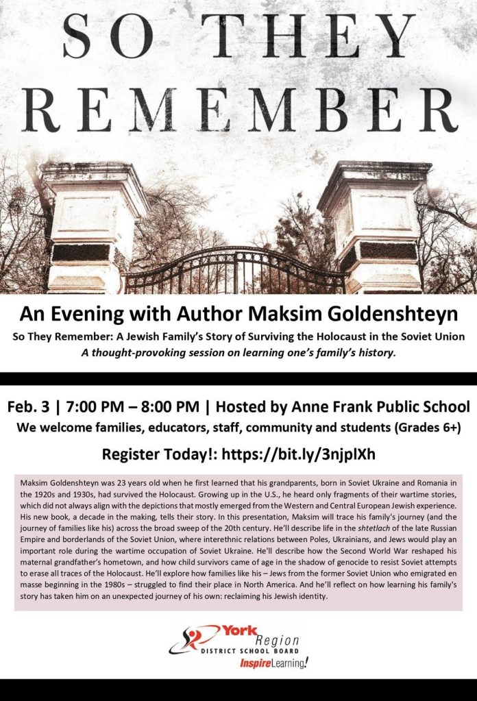 So They Remember: A Jewish Family’s Story of Surviving the Holocaust in the Soviet Ukraine Posted on January 25, 2022January 20, 2022 by Ventura Park P.S. Feb. 3rd | 7:00 PM – 8:00PM | Registration Form Author: Ventura Park P.S. View All Posts