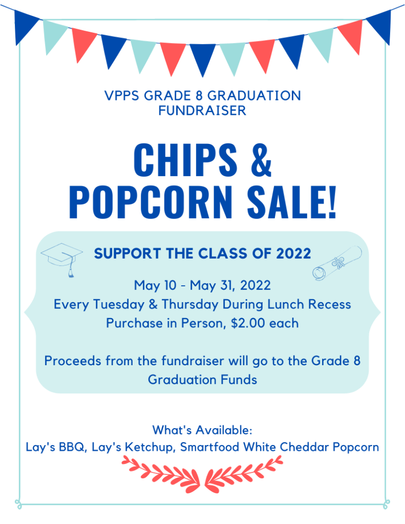 Grade 8 Fundraiser starts May 10th! Image• Posted on May 9, 2022May 5, 2022 by Ventura Park P.S. Author: Ventura Park P.S. View All Posts