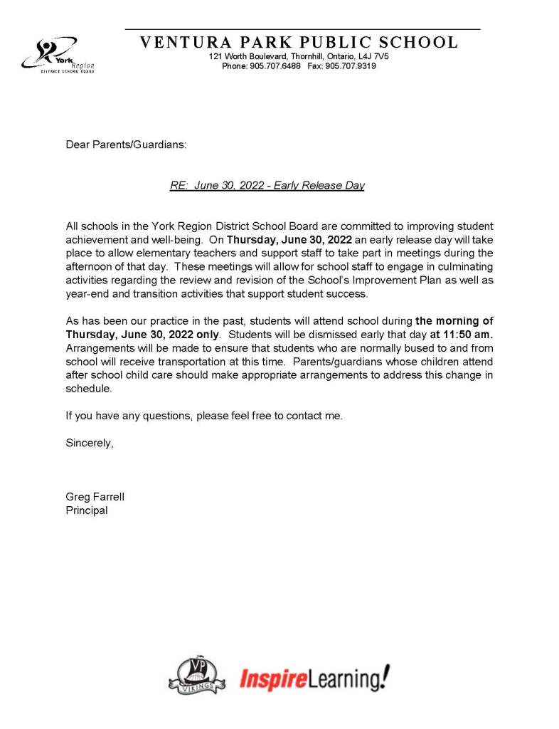 Tomorrow is an Early Dismiss Day Image• Posted on June 29, 2022June 1, 2022 by Ventura Park P.S. Author: Ventura Park P.S. View All Posts