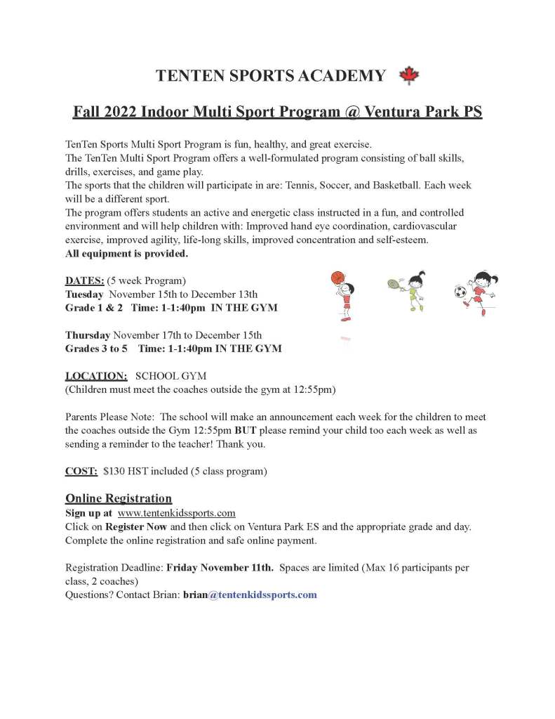 REMINDER!!! TenTen Sports @ Ventura Park Image• Posted on November 10, 2022 by Ventura Park P.S. Registration Closes November 11 Author: Ventura Park P.S. View All Posts