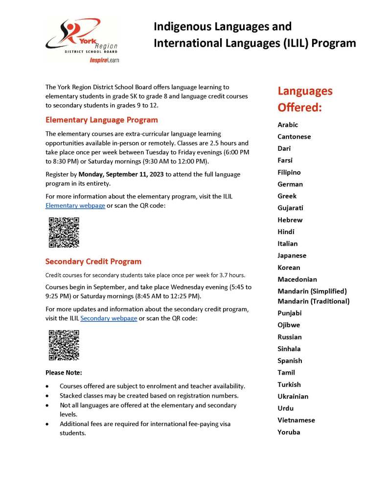 Indigenous Languages and International Languages – Elementary Language Programs