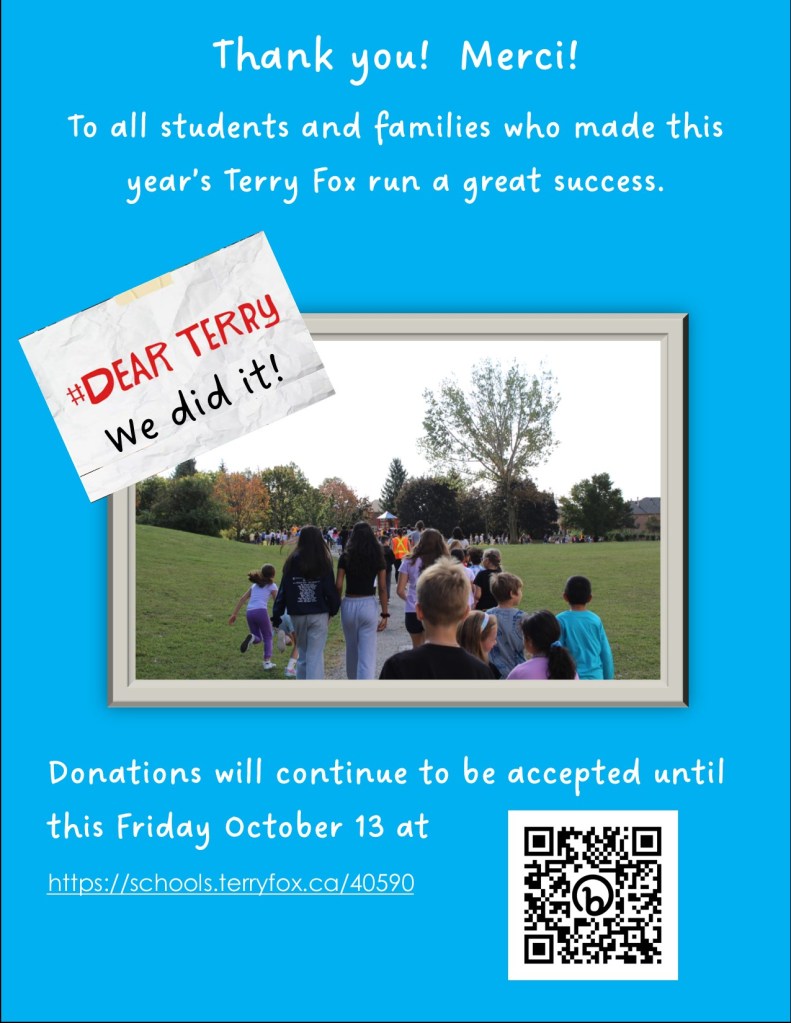 Thank you for donations to Terry Fox Run Image• Posted on October 11, 2023 by Ventura Park P.S. Author: Ventura Park P.S. View All Posts