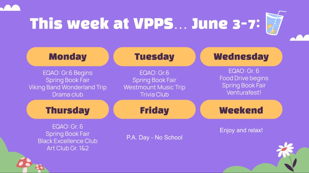 This week at VPPS… June 3-7 Image• Posted on June 3, 2024May 31, 2024 by Ventura Park P.S. Author: Ventura Park P.S. View All Posts