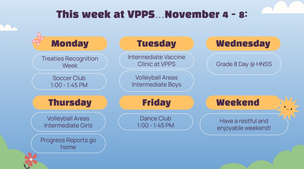 This week at VPPS…November 4 – 8 Image• Posted on November 4, 2024November 1, 2024 by Ventura Park P.S. Author: Ventura Park P.S. View All Posts