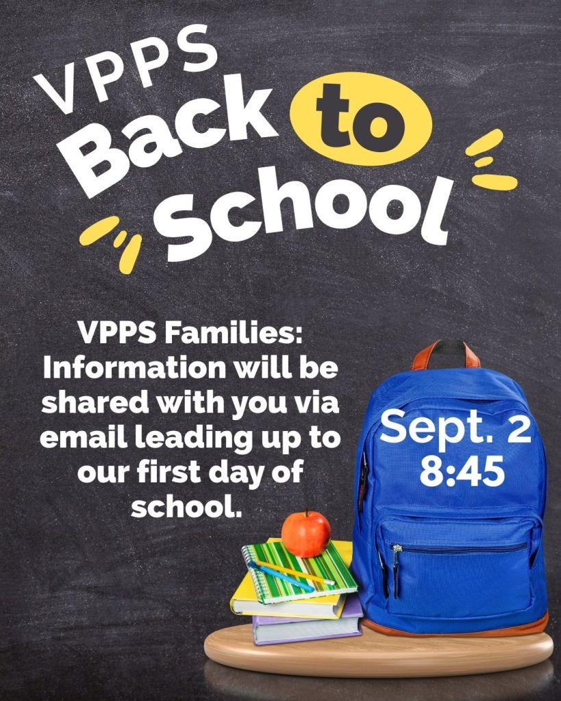 VPPS Families: Information will be shared with you via email leading up to our first day of school on September 2. See you soon! À bientôt !