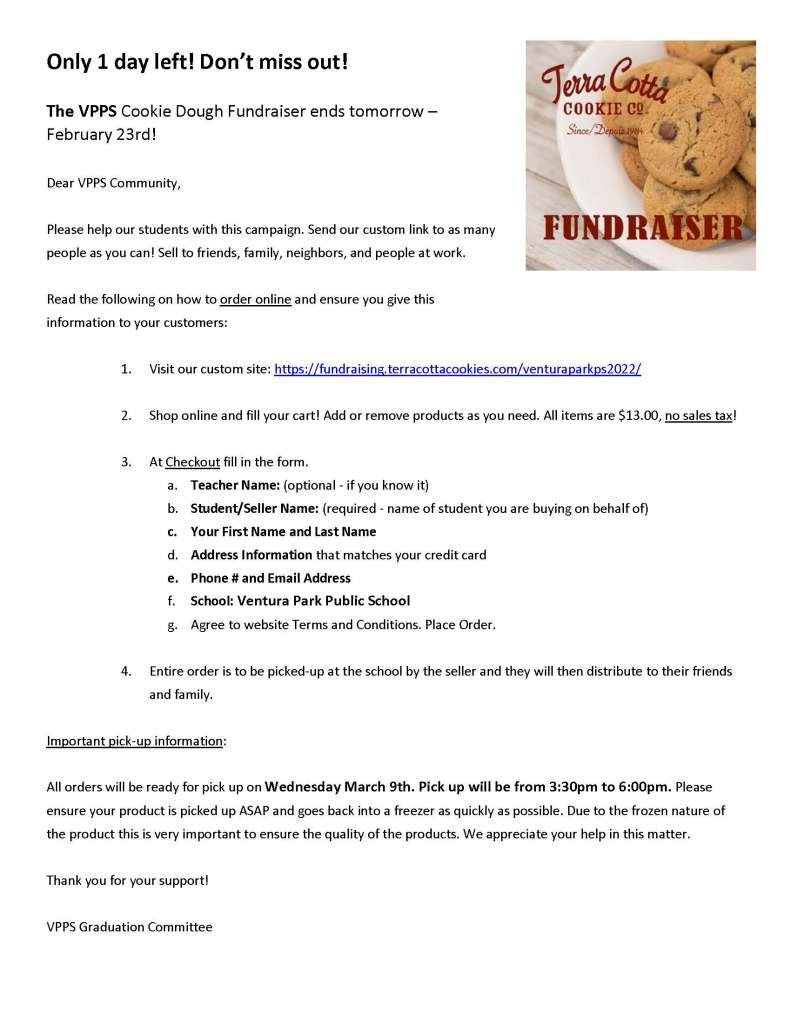 Cookie Dough Fundraiser – Last chance to order Image• Posted on February 22, 2022February 22, 2022 by Ventura Park P.S.