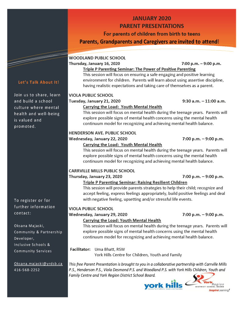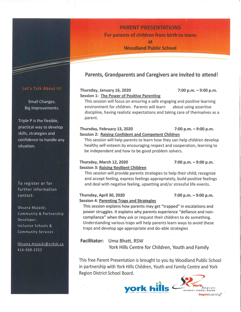 Parenting Presentations at Woodland Public School Image• Posted on December 17, 2019 by Ventura Park P.S.